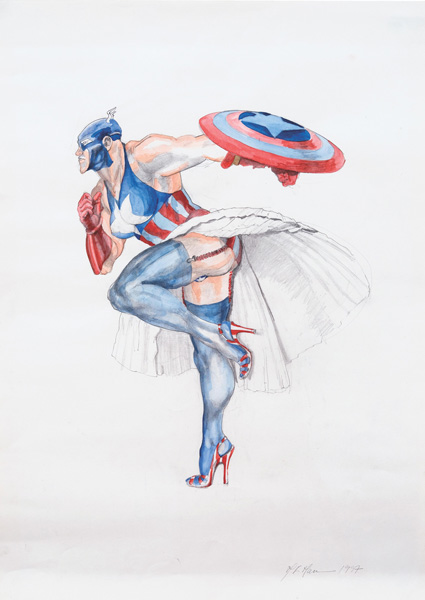 From US comic book superheroes to Manet’s Olympia, she subverts the hierarchies between genres, making no distinction between art history and popular culture. Echoing the strategies of the grotesque, such as exaggeration, parody and subversion, she uses humor to question the codes and stereotypes dividing the genders.