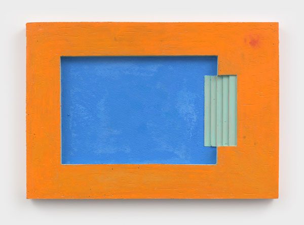 These three-dimensional relief forms are constructed from styrofoam remnants from the artist’s studio, cast in concrete, and painted with rich layers and fields of color, bearing the traces of their making and engaging in dualities such as positive and negative space, form and surface, and sculpture and painting.