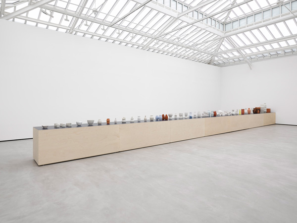 In the artist’s Paris presentation—her first in the city—Kusaka places new forms across a pedestal spanning the length of the gallery reflecting her desire to return to a more intimate scale of making and experiencing, inviting audiences to closely observe the meticulous details applied to her forms. Kusaka also delves into familiar motifs and techniques – including her signature method of carving, which often steers her use of glazes and approach to firing.