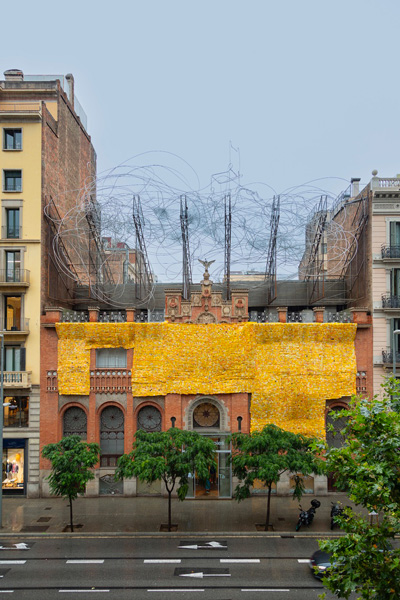 Serge Attukwei Clottey (Ghana, 1985) has been invited to cover the façade of the early Modernista building of the Fundació Antoni Tàpies (designed by Lluís Domènech i Montaner) with a new skin composed of tesserae made from waste material.