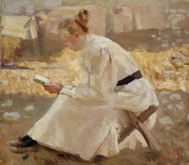 Friederike Koch-Langentreu, „Lesende Dame in Weiß“, 1900 Oil on canvas 43,5 x 50 cm Neue Galerie Graz Photo: Universalmuseum Joanneum/N. Lackner