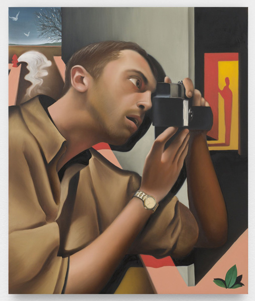 His very particular style of painting is immediately recognizable through its rounded forms, typical of the computer software he used as a 3D animator. O’Brien portrays characters, mainly male, within spaces inspired by his everyday life as well as historical painting. His paintings reveal the psychological dimension between bodies and architecture, the solitude of an individual in an apartment or in the setting of a crowd.
